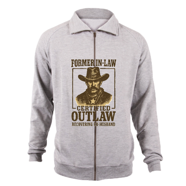 A bold, rugged design with a vintage outlaw feel, featuring a tough, no-nonsense character and the words “Former In-Law – Certified Outlaw – Recovering Ex-Husband.” Perfect for anyone who’s survived the wild west of relationships and wears their freedom with pride.