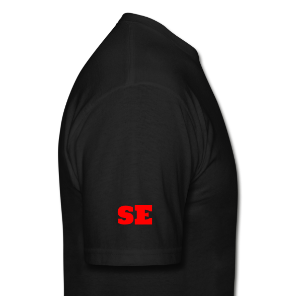 Black T-shirt with red wording by: Something Else.